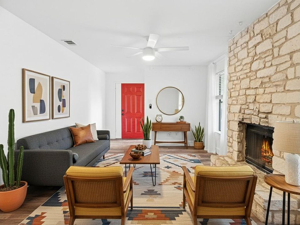 MOTIVATED SELLER!!! Discover your new Austin oasis in this stunningly renovated townhome, perfectly situated in the sought-after 78741 zip code. This move-in-ready property blends modern updates with an unbeatable location, offering a lifestyle of convenience and style. As you step inside, you’ll be greeted by an open, airy atmosphere thanks to fresh paint and soaring ceilings. The large living room, anchored by a cozy gas fireplace, provides the perfect space for relaxing or entertaining. A separate dining room offers a dedicated area for meals and gatherings. The kitchen is ideal for a home cook, completely remodeled with new cabinets, elegant wood countertops, and a full suite of sleek, modern appliances. This home features an exceptional layout with two primary bedrooms. Upstairs, you'll find two spacious bedrooms, each flooded with natural light and boasting its own full bathroom for ultimate privacy and comfort. One bedroom opens directly onto a peaceful atrium, ideal for your morning coffee, while the main primary bedroom includes a versatile loft area with views overlooking the community pool and St. Edward's University. Enjoy true peace of mind knowing all the major updates are done! This home features a recently replaced roof, new siding, fresh paint, gutters, and new insulation. Plus, the foundation was recently leveled by the HOA and comes with a 100-year warranty. This is also an excellent investor opportunity—inquire about monthly lease estimates! The community offers fantastic amenities, including a sparkling pool, tennis courts, and a tranquil greenbelt perfect for nature walks. Its prime location provides quick access to Austin’s Entertainment District, the F1 track, and Austin-Bergstrom International Airport (AUS). Proximity to the bus line and the University of Texas adds another layer of convenience. Don't miss your chance to own one of the best homes for sale in Austin! Schedule your tour today.