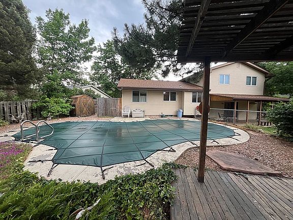 Welcome to 1712 W Stuart St. in the desirable neighborhood of Foothills Green on a large cul-de-sac lot in Fort Collins. Home offers 4 spacious bedrooms and 1 full, 1 three quarter and 1 half bathrooms. Upon entering, you'll have 2 closets for storage and to the right an open living room that connects to the inviting kitchen, which offers abundant counter and cabinet space, along with a breakfast bar, dinning area and work space. The top floor hosts a primary suite with ensuite bathroom, generous wardrobe and a walk-in shower. Three additional bedrooms and a full bathroom complete with linen closest and an additional closet for storage in the hall. The lower level features a cozy family room with a fireplace. French doors lead to a bright back covered patio. This level also includes a half bathroom, large closet and access to the attached over sized two-car garage. The partially finished basement provides a versatile recreation/lounge area and large storage room with laundry area and additional room for hobbies etc.. The backyard boasts mature landscaping, perennial gardens, a naturally shaded covered stamped concrete patio perfect for summer barbecues, in ground swimming pool with pergola and a lawn with a sprinkler system. Additional features include central air conditioning. Energy-efficient windows help maintain a comfortable indoor climate while reducing energy costs. Exterior is brick and vinyl siding, roof was replaced last in 2013. Neighborhood schools are Bennett Elementary, Blevins Middle School and Rocky Mountain High School.