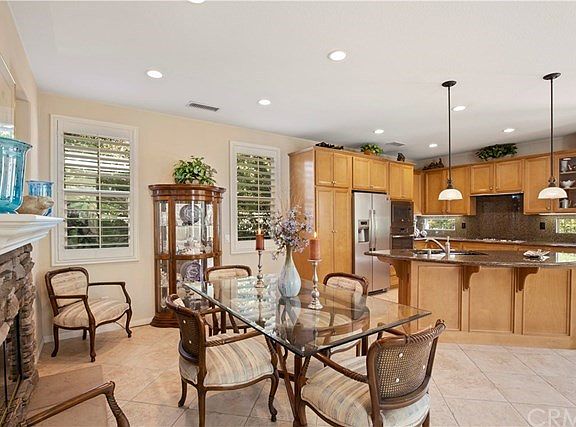 Welcome home to your very own masterpiece at Augusta, a prestigious enclave located within the beautiful master planned community of Vista Del Verde in Yorba Linda. This is the first time this gorgeous 3 bedroom (w/ option to make 1st fl ofc 4th bedrm), 3 bath home goes on the market, and it will not last long! Tranquil fountain in the front yard, flagstone leads you to your custom front door. Step into the spacious open floor plan with porcelain flooring thru out first floor. Huge kitchen with island, oak cabs, stainless steel appliances, granite slab counters/backsplash. Beautiful yard with large patio! Oversized family room. Huge formal living room and dining area share a double sided fireplace. Full bath on the main floor. First floor office. Many windows in the home, adorned by wood shutters! Laminate wood staircase leads to the upstairs, as it extends throughout the second floor. Enter your master suite which includes a stunning balcony to drink your morning coffee or enjoy your night cap. His and hers walk-in closets, master bath with oversized soaking tub and walk-in shower. Also on 2nd flr 2 more bedrms with big closets and Jack/Jill bath. Storage is never a problem with the "finished" attic accessible from the second floor living space! Store all your holiday decor, and more, complete with rods to hang clothing. HOA dues include remodeled comm pool, spa and play area-steps from the home! Surrounded by miles of horse and walking trails, few miles fro