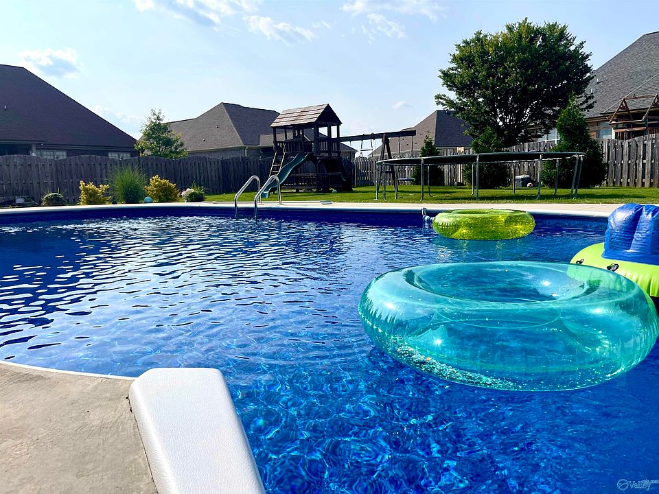 Gorgeous home in the Ledges of Oakdale, featuring a 2 yr old in-ground pool perfect for summer! Enjoy wood floors, soaring 10'+ ceilings throughout. The master bedroom offers a serene retreat with tray ceiling, recessed lights, cork flooring, en-suite bath (jet tub, tiled walk-in shower, double vanity), and a spacious walk-in closet. Two additional bedrooms and a full guest bathroom on the main level. Upstairs, you'll find an oversized bedroom and bathroom with shower/tub combo. Attic access provides ample storage or potential for expansion. New HVAC (2021) and whole-home Air Purification System. Rinnai tankless water heater ensures endless hot water! Convenient to Athens & Madison!