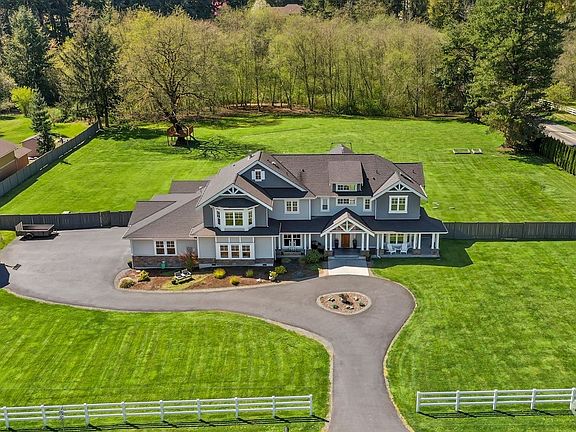 Dream home nestled on 4.77 acres of private land, offering luxury living! The main floor boasts a Chef's kitchen w/ huge island, full height cabinets & XL pantry. Grand great room w/ soaring 30-ft ceiling, wall of windows & stunning fireplace. Formal & informal dining, an office, rec room, 1/2 bath & Jr. Suite + 3/4 bath. Split bedrooms upstairs w/ luxurious primary suite + balcony, walk-in closet & spa-like 5-piece bath. 3 more spacious BRs, bonus room, laundry & full bath. Solid wood doors & sound isolation in walls/floors, lovely crown molding/wainscoting & hot water recirc. Massive backyard w/ covered patio + heaters, speakers, gas BBQ hookup, hot tub & a sun shade/projection screen. Irrigation system, 3-car garage, antique barn/ shed.