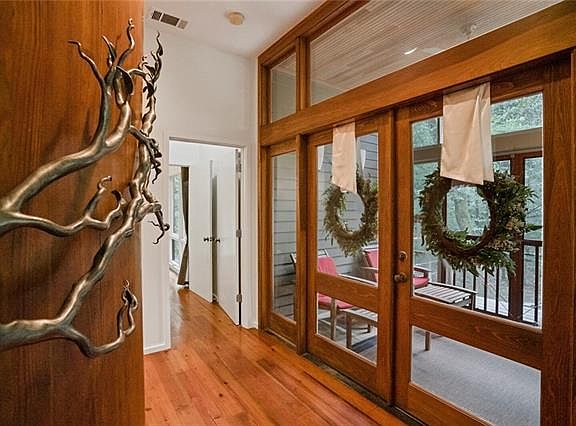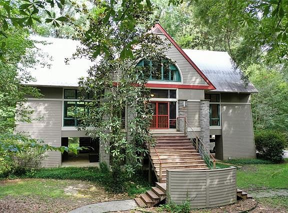 Come see the beautiful award winning home, "The Tree House". Designed by Michael Holly with nature in mind. 5 bedrooms and 4.5 baths, this home has plenty to offer. Large windows framing the views. Screened porches, and large decks. Elevator for top floors. Stainless steel counters, and sinks in the kitchen. SO much storage. Zoned for privacy, and surrounded by natures beauty. Minutes away from the town, and schools. Very unique home.Many signature spaces. Master bed is built in. Book your showing today!