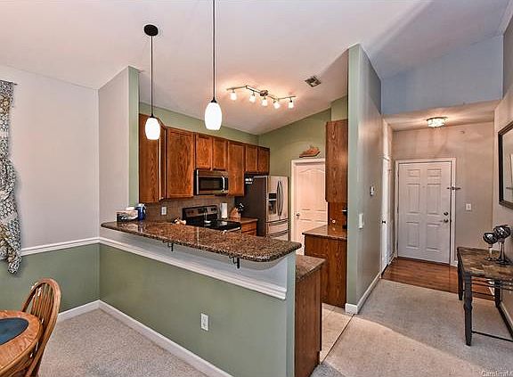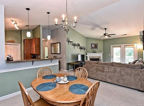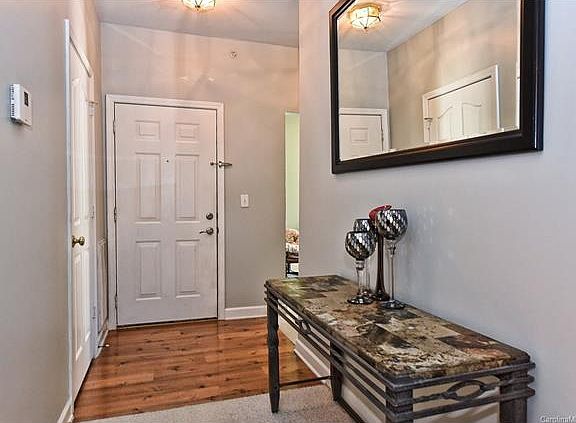 Come and view this beautiful, one level condo, you won't be disappointed. Open floor plan with the family room with wood burning fireplace, dining area and breakfast bar. Large Master suite with walk in closet with built-ins. Office space in addition to the 2 bedrooms. Large, covered balcony overlooking green space to enjoy the beautiful Carolina weather! The community features a Club House, Pool, Tennis Courts and Fitness Room. And don't forget location! Easy commute to Ballantyne and 485.