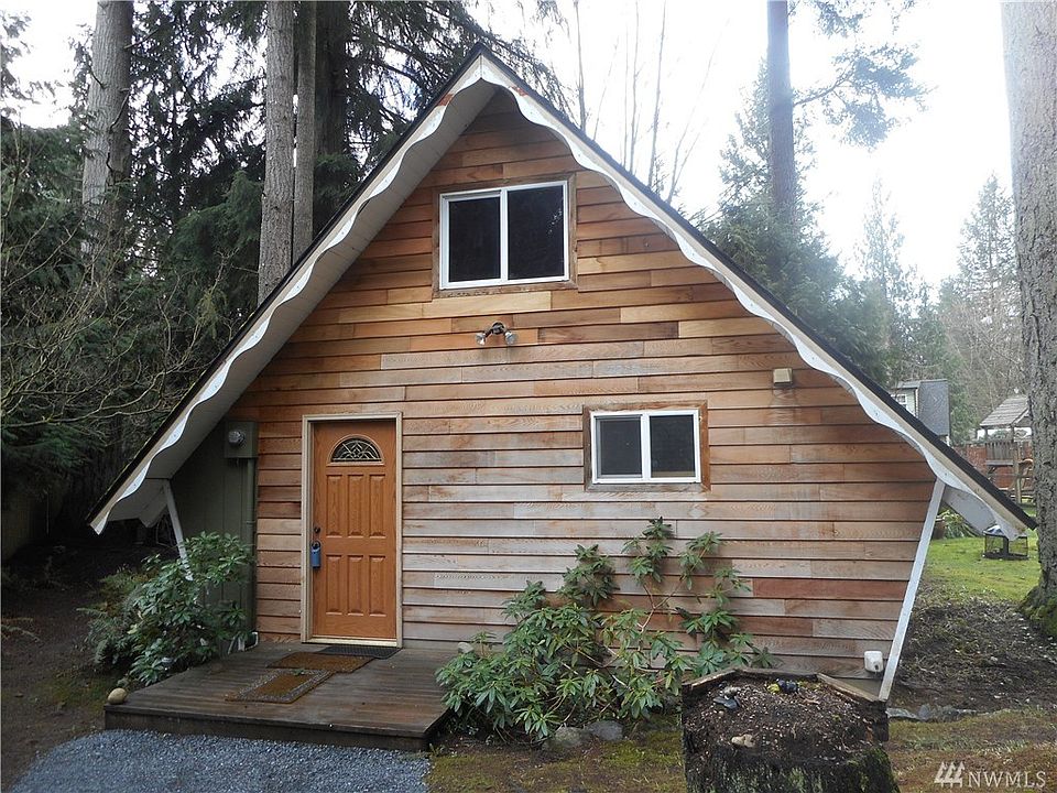 A FOR EFFORT!!! Fully remodeled A-frame on large lot in Arlington! Almost everything upgraded including 40-year composition roof, siding, windows, knotty pine paneling, flooring, cabinets, countertops, wood stove and more! Fantastic yard with deck, garden space, fire pit, SHOP! Gated community with private beach/river access! Not in flood zone - ZERO DOWN FINANCING available! Make this yours today!