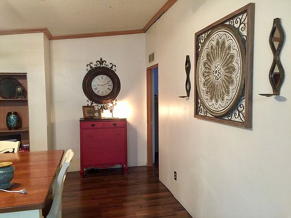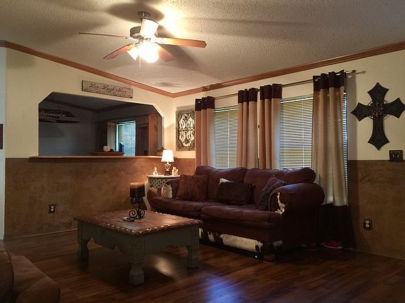 Spacious 3bd 2bth double wide manufactured home. There is an additional room tied into master bedroom which can be used for an office or nursery. This property sits on a quiet 2.5 acre lot with plenty of space and privacy. New laminate wood flooring was installed in the living room, den, dining room, kitchen and master bedroom. There is new carpet in the two remaining bedrooms. The well system: New tank, air regulator w/gauge, check valve/control box, snifter valve, PSV and submersible pump motor. This property has a great living space with a huge kitchen and master bedroom.
