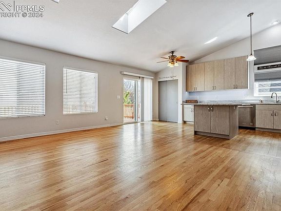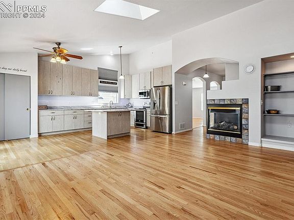 One level living with a multi-gen possibility! Over 3000 square feet! 5 Bedrooms/4 baths plus main floor study. This incredible kitchen has been thoughtfully remodeled with stunning granite counters, island, extended cabinetry, stainless steel appliances, under cabinet lighting and more! Open family room offers vaulted ceilings, skylights, a cozy fireplace and a desk niche. In addition, there is a formal living room/formal dining area. Plenty of room for everyone with a large second family room/media room with kitchenette downstairs, a large bedroom with on-suite bath, plus 2 more bedrooms and a bath/laundry. The storage or bonus room is insulated for sound if you have some musicians in the family! All appliances stay including upscale washer and dryer on main floor, stackable washer/dryer and extra regular size fridge in basement. The low maintenance backyard is fully fenced with a fun fire pit, shed, and recently repainted deck. Fyi – the Traeger grill can be included! So many extras - New roof in 2023, A/C installed, TV’s included, remodeled baths with granite, tile flooring, amazing storage throughout - especially in the kitchen – come and see! This location is highly desirable with easy access to I-25. There is a playground in the neighborhood, schools nearby and many amenities right there in the charming town of Monument.