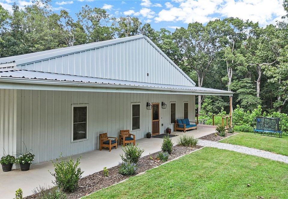 Want to get away? This 2021 Modern Barndominium sits on 3.69 acres and features an open floor plan and wrap-around porch that make it perfect for a large family or entertaining big groups. Glass garage doors line the family area and open up to a large wrap around porch and deck. A split floor plan accommodates even the largest families that need the 5 Bedrooms, Office and 3 Full Bathrooms. It’s a house unique enough to stand out, AND comfortable enough to call home. Located just 20 minutes from Downtown Bentonville, Walmart HQ and Northwest Arkansas Regional Airport, this home is perfect for rural living in an ever growing NWA.