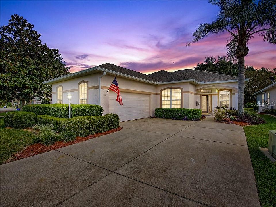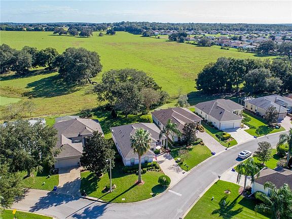 STONECREST 55 + GATED GOLF COURSE COMMUNITY WITH ALL THE AMENITIES AND 4 POOLS, LOCATED 2 MILES FROM THE VILLAGES BY GOLF CART AS THIS IS A GOLF CART COMMUNITY. ONLY 2 MILES BY GOLF CART TO THE VILLAGES! GET READY THIS HOME WITH ITS BREATH TAKING VIEW WILL THINK YOU ARE LIVING IN THE COUNTRY! SPECTACULAR VIEW OF ROLLING PASTURE LAND (PART OF 88 ACRES) WITH CATTLE ROAMING. THIS TWO BEDROOM, TWO BATH PLUS DEN (WITH FRENCH DOORS) IS TRULY ONE OF A KIND. 10 FT CEILINGS, NEW ROOF IN OCT 2020, NEW CARPET FLOORING IN OCT 2020 AND NEWER APPLIANCES THAT ARE STAINLESS STEEL. 10 FT CEILINGS THROUGH OUT, SPLIT BEDROOM PLAN AND OPEN AND SPACIOUS DESIGN. SLIDING GLASS DOORS OPEN TO ENCLOSED LANAI WHICH HAS ACYRLIC SLIDING WINDOW THAT WARDS OFF THE RAIN BUT WELCOMES THE GENTLE BREEZES. STEP OUT INTO THE MANICURED BACKYARD AND BREATHE IN THE BEAUTY. PEACEFUL AND QUITE SURROUNDING WAITING TO EMBRACE YOU. THERE IS ROOM ENOUGH FOR A POOL IF DESIRED. TWO CAR GARAGE WITH 10 FT CEILING. THIS HOME IS PERFECT FOR THE SNOW BIRD OR THOSE LOOKING EASY MAINTENANCE. LOVELY BAY WINDOW IN HUGE MASTER BEDROOM PERFECT FOR A DESK OR A COZY READING AREA. LARGE WALK IN MASTER CLOSET AND A WONDERFUL BATHROOM DESIGN WITH TWO VANITY, SHOWER AND SOAKING TUB. THIS HOME HAS A UTILITY ROOM RIGH OFF THE GARAGE. HURRY TO SEE THIS HOME AS IT WILL NOT LAST LONG!