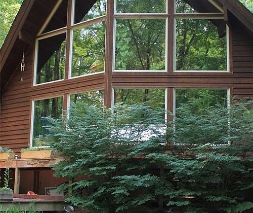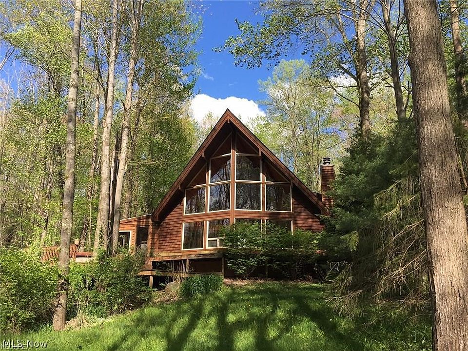 If you have been yearning for a unique home in a setting that offers privacy, a sense of seclusion and is located close to freeway access and city amenities, your search is over! This is a custom built Lindal Cedar Post and Beam Home sitting on 2.67 acres in Bainbridge Twp. in the Kenston School District and just minutes from the Village of Chagrin Falls and Rt. 422. The walls of glass in the rear and windows throughout provide beautiful views of nature, a creek and small pond. The beauty of the great room with soaring beamed ceilings and walls of cedar and stone fireplace cannot be explained in words or pictures but requires a visit and tour of this special home. The open kitchen features Kraftmaid cherry cabinets, granite counters and a center island with countertop range. The first floor master bedroom with large bathroom and plenty of closet space opens to a glass enclosed lap pool sanitized without chemicals. The second level holds two additional bedrooms, a full bath and a loft a