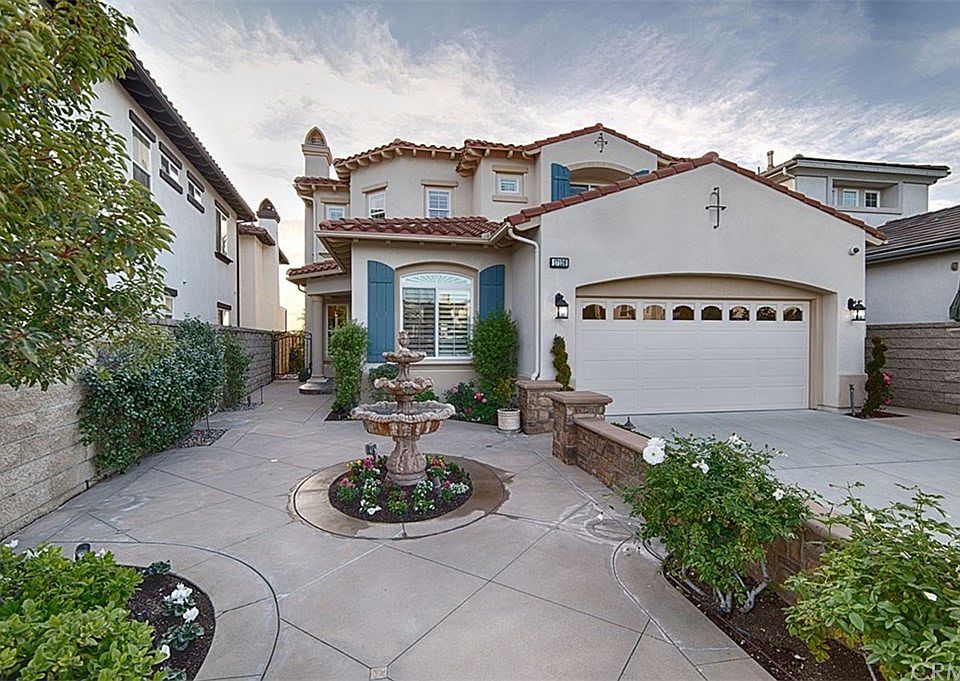 Stunning sunsets & Catalina views from this elegant, fully upgraded pool home in the prestigious community of Vista Del Verde, The Links by Toll Brothers. This luxurious home is nestled in a desirable cul-de-sac & offers upscale living minutes from Black Gold Golf Club. Walk in through double doors to a beautiful curved wrought iron & rich wood staircase & travertine flooring. The main floor hosts a downstairs bedroom w/en-suite bath, a full private office & a half bath. Adjacent to the formal living room you will find the formal dining room. The family room features a stone fireplace w/hearth & mantle, rich wood built-ins & opens to the gourmet kitchen w/sprawling granite counters, a large center island w/generous seating, desk area, stainless steel appliances including a 6 burner stove & griddle, double oven & built in microwave. On the second level you will find the remaining 3 bedrooms, including the master suite w/retreat area which includes marble flooring, a generous walk in shower, jetted tub, his & hers vanities, walk in closets, see through fireplace & a private balcony. There is a large loft, w/built-ins, perfect for a game/teen room w/large seating area. Fun backyard with custom pool, spa, fireplace, bar area & BBQ is great for entertaining. The professionally landscaped yards, with beautiful fountains, a wine cellar, the upstairs laundry, LED lighting throughout, 3-car garage round out this fabulous home in the highly rated Placentia-Yorba Linda School District.