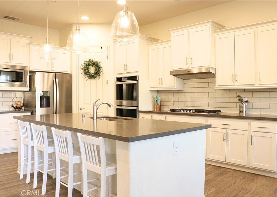 This beautiful open floor plan home began construction in 2021 and was completed in 2022. This elegant home is located inside a very desirable private gated community with sidewalks. This custom home has 4 bedrooms plus an office and 3 bathrooms with 3,054 sqft. All of the bedrooms have ceiling fans. Home features a lovely gated court yard in the front which lead up to the large entry double doors. Once inside this beautiful home you are immediately greeted with high ceilings and an open floor plan. The spacious living area features a gas fireplace. The kitchen is truly elegant and is the talking point of the home. The kitchen features upgraded cabinet hardware with soft close drawers and doors. Beautiful Quartz counter tops in the kitchen. The kitchen also features a beautiful backsplash. LVP flooring through out the home. Thermafoil cabinets through out the home. This home features a 3 car garage with a private gate leading up to your RV parking on the side of the home. Lot is 17,985 sqft. The backyard features an amazing patio, along with completed landscaping. A gardening area with fruit trees, a retaining block wall, concrete, artificial grass, rocks, trees, bushes, and a drip system were added. Home is also equipped with a Taexx pest control system by Home Team Pest Defense. **Appliances included in the kitchen include the oven, microwave, dishwasher and cook top.** THIS HOME IS BEAUTIFUL AND TRULY A PLACE TO CALL HOME ** Buyer agent to do all due diligence and verify all information. Please do not disturb the owner.