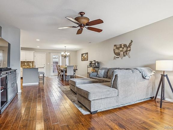 One of the best in Prairie Meadows of Parker. This wonderful townhome has been updated/upgraded throughout! Wonderful open floor plan. Hardwoods throughout the main level. Gourmet kitchen with white cabinetry, large center island, granite countertops, pantry & stainless steel appliances. Large living room & dining room spaces. Fenced in patio off of the dining room. Large primary bedroom with walk-in closet. Behind the barn door is the primary bath with dual sinks, walk-in shower and beautiful upgraded tile. Nice sized secondary bedrooms. 2nd floor full bath. 2nd floor laundry room with drying rack. 1 car attached garage. 1 reserved space. Lots of street parking. Minutes from Trader Joes, Costco & lots of other shopping. Quick jump on 470 to I-25 or to the airport. Cherry Creek trail is at the end of the street! This one is a must see! For a virtual tour visit: https://listings.mediamaxphotography.com/17128-Lark-Water-Ln