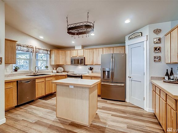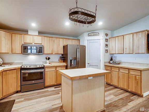 Unique opportunity awaits on shy acre. You will love what this property has to offer featuring 3 bedrooms, den, 2 full baths, 3 car attached garage and incredible 31x62 detached garage/shop. Master bedroom/bath includes walk-in closet, 5 piece bath with corian counter, heated jacuzzi tub and huge shower. Detached garage has 14' RV door, 1/2 bath, propane heat, wet bar upstairs with 10x10 deck, possible MIL or office. Comfortable porch, beautiful grounds, RV parking, dog run. A must see!