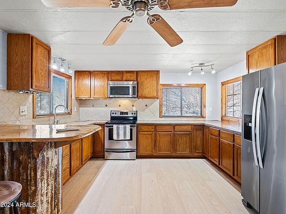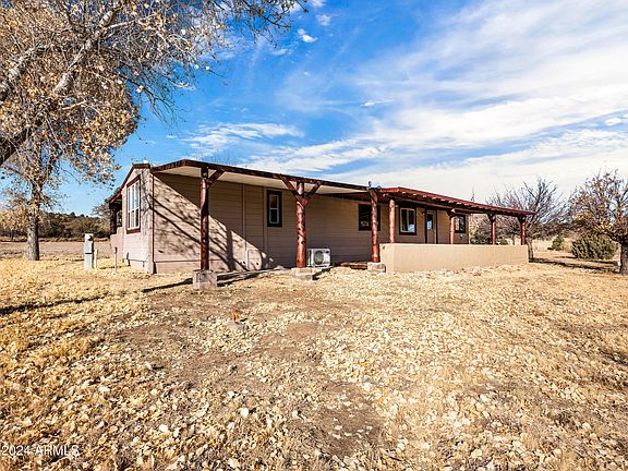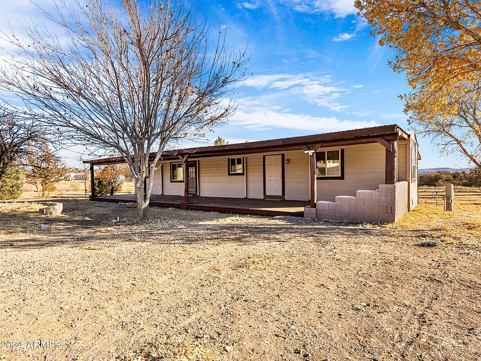 HORSE PROPERTY & HOME IN Peeples Valley, AZ. Exceptional opportunity to own a great horse property at an affordable price. Over 2.25 acres of pristine & perimeter fenced land.  New flooring throughout. New A/C & Heat installed 11/2024. There's a ton of parking for  your truck and trailer or RV. NO HOA!  Full length decks front and back. Open floor plan with a separate detached office / hobby room.  Just imagine mature green trees, fruit trees and green grass all summer long? Why yes - it's all right here! This warm & inviting li'l ranch refuge provides quiet and solitude from city life.