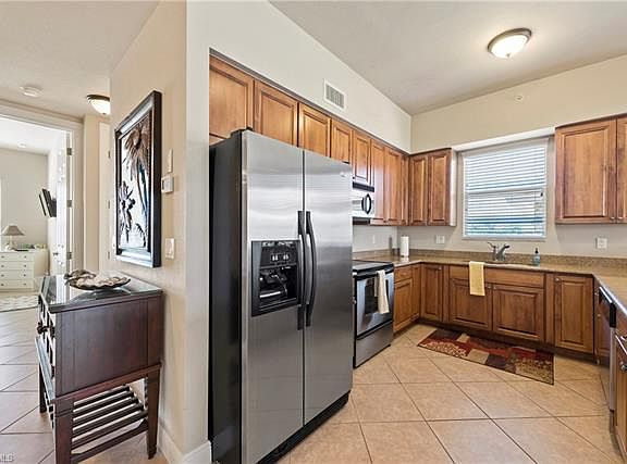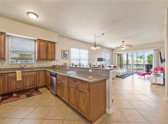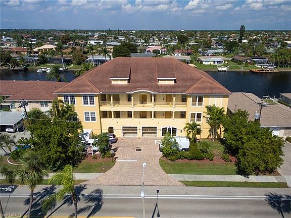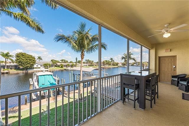 Gorgeous 3/2 Gulf access end unit condo in a newer building, minutes to the river and Jaycee Park! Incredible views from your oversized screened lanai that overlooks your own private boat slip and refreshing community pool with cabana and BBQ area. Spacious kitchen has stainless steel appliances, granite countertops and a breakfast bar large enough for the entire family. High ceilings and oversized tile throughout. Spacious master bedroom leads onto the lanai through sliding glass doors and the master bath has granite countertops and dual sinks. The 2 guest bedrooms are split from the master and share a guest bath. Oversized laundry room inside the unit. Impact windows and doors throughout. 2 assigned parking spots and extra storage area under the building and accessible by elevator - secure access with key-code entry. Furnishings are negotiable. Boat slip assigned to unit - currently has a 16,000lb lift that is also negotiable. Light and bright home minutes to the shops and restaurants of downtown Cape Coral. Quick access to the Caloosahatchee River and the Gulf of Mexico. Newer AC. Extremely well-maintained and shows well. Call to schedule your private showing today!