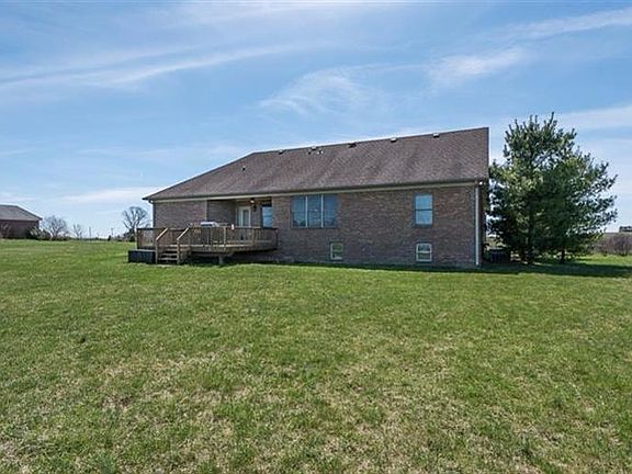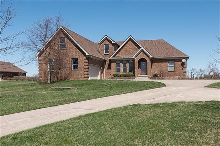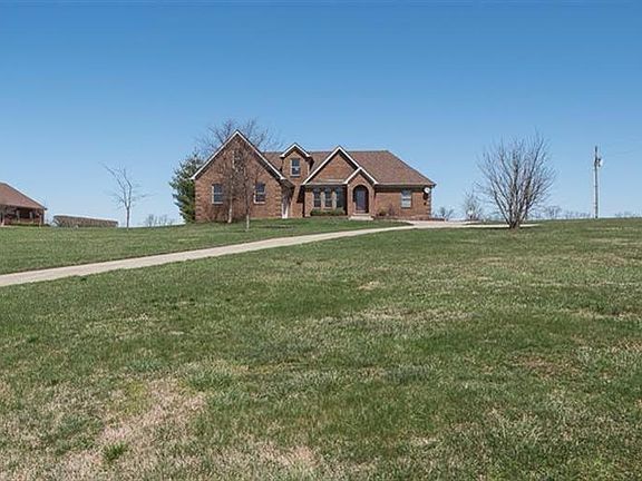 Brick home sits at the end of a long driveway with gorgeous views. This well cared for custom built home has a side entry 2 car garage. The entry leads to a large family room perfect for entertaining. The spacious kitchen has cabinets and counter space galore and includes a large pantry, kitchen bar, and dining area. A split bedroom plan allows for privacy in the master suite. The master bath features a large whirlpool tub, separate shower, double vanity sink, and closet divided for his and hers. The left side of the house features two guest rooms, one with a private bath. Upstairs is a large bedroom/bonus room with full bath. The basement is like another house, with wet bar, full bath, rec room, and living area with fireplace. Endless possibilities!!! Picturesque 5.2 acres!