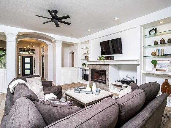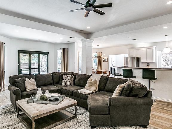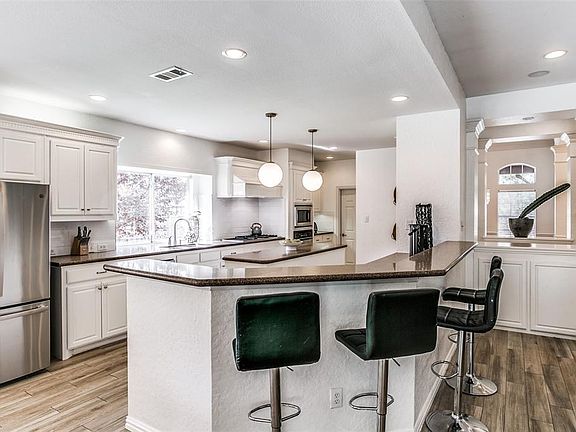 Gorgeous UPDATED One & a half story home LARGE LOT! Lushly Landscaped w mature trees, covered front porch & upgraded Iron Front Door! Open layout w all bdrms located on main floor. 4 bdrms, 3 full baths down w split bdrm layout. Spacious Island Kitchen offers tons of White Cabinets, Granite Ctops, Gas Cktp w Grill, Breakfast Bar & Lg eat in Breakfast Area. Kitchen is open to the spacious family rm w fireplace & builtins. Grand Primary Retreat offers sitting area w Gas FP, w ensuite bath, his&hers vanities with lighted mirrors & corner jetted tub. Updated full bath w Metal Frame Enclosure! Beautiful Lighting Fixtures! Upstairs you'll find a HUGE Gamerm w half bath & tons of storage! The backyard is an Outdoor OASIS which with a tranquil pool&spa, covered patio and TONS of grassy area! The long driveway offers an electric gate to the 3 CAR side by side GARAGE! Home is located in the Golf Community of Coyote Ridge & is convenient to shops, restaurants, airports, Legacy Bus Park and more! 2022-10-15