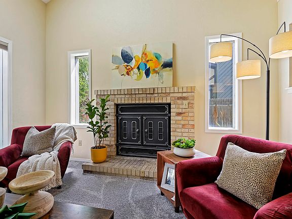 Love where you live & make this incredible home within desirable Cantrell Estates your own! Soaring ceilings welcome you into the most enjoyable living room complete w/ wood burning stove & tons of natural light. Kitchen & dining room open to an impressive family room perfect for entertaining w/ access to your private backyard oasis. Enjoy the bright & cheery kitchen featuring gorgeous cabinetry, new SS gas range & hood & expansive counter space & bar-top seating. The private master suite is everything you have ever wanted w/ vaulted ceilings, window seat, built-in bookshelf & huge walk- in closet. Featuring a spacious bathroom w/ separate soaker tub & dual vanities. Capture the perfect office nook upstairs complete w/ bookshelf & extra large storage closet. Brand new carpet throughout home. HVAC & water heater replaced in 2020. Backyard is lush w/ mature landscaping, quaint garden space & storage shed. Nestled within the perfect neighborhood on a quiet street walking distance to the Boise greenbelt & no HOA