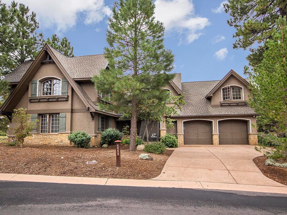 This spacious 3 bedroom features hardwood floors through out the great room and into the kitchen.There are vaulted ceilings in the great room. The windows allow a great amount of shine to come through and there is a deck off of the great room to enjoy Flagstaffs fresh air. There is a beautiful fireplace in the great room to keep warm during snowy months. The kitchen features granite counter tops and an island.The master suite and bath are also on the main level, complete with a walk-in shower, tub with tile detailing, duel sinks