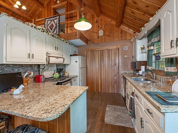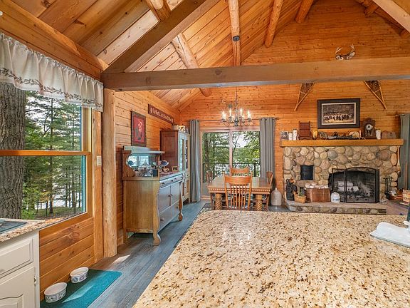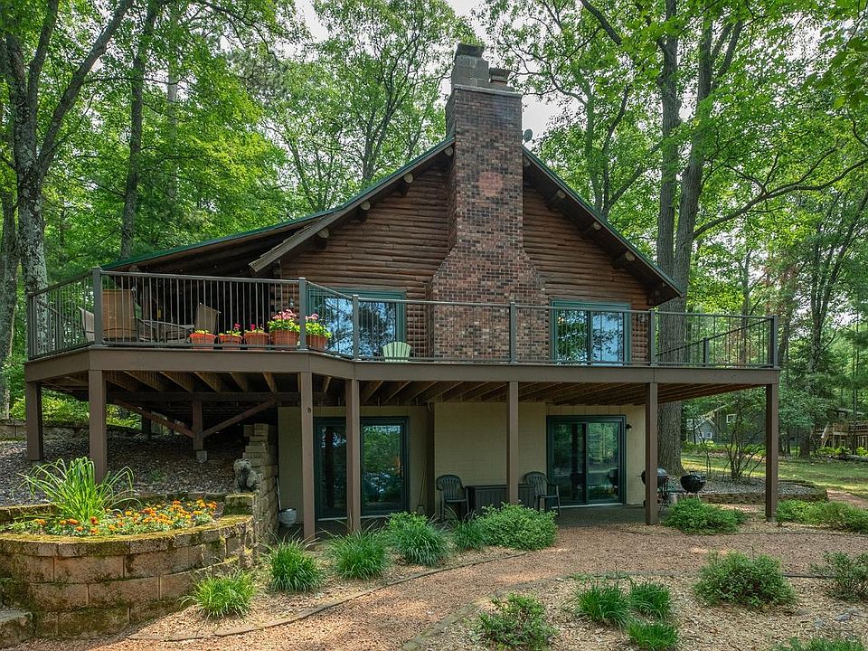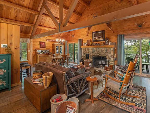 A rare opportunity to own a stunning full log home w/197 ft of western exposure frontage on Towanda Lake! Sitting on 1.6 acres w/beautiful hardwood trees & a massive garden that is highly producing, this 3 bed/3 bath home is sure to meet all of your needs. The large living room features cathedral ceilings, timber beams, & a fieldstone wood burning fireplace. The kitchen/dining room are generously sized & feature a large pantry, granite counters, & breakfast bar. Stunning lake views greet you from each space & large patio doors give access to the lakeside deck. All bedrooms are spacious & have ample storage/closet space. The walkout basement features a large family room, two patio doors to access the lakeside patio, & laundry room. Need extra storage? A 3 car det garage & large outbuilding have you covered! Recent updates: metal roof, new furnace, maintenance free deck, new sliders (4), generator, basement HVAC vents, & ext logs all re-stained and sealed. Welcome home!
