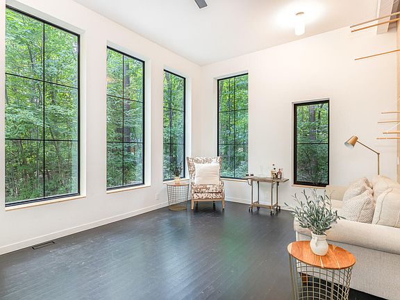 A serene retreat from the hustle and bustle of city life, without forgoing amazing Raleigh conveniences waits for you. This perfect spot for a permanent vacation feel welcomes you with oversized windows bringing the outdoors in. Beautiful trees & natural light pour inside giving you a wooded mountain feel. Talk about flexibility, the recreation/ flex room gives you extra space & endless possibilities. Current owner used as a workshop & office for their business. Versatile room can be office, game room, great room, etc. Kitchen offers white cabinets, white solid surface countertops, breakfast area, & oversized pantry. Oversized Primary Suite overlooking your serene landscape offers sitting area, dual vanity, soaking tub w/ separate tile shower, wash closet, & WIC. Don't miss the Secret Room upstairs! Roof '21. New white Exterior Paint '24. Encapsulated Crawl Space. New Garbage Disposal. Conveniently located 6 minutes to the heart of Downtown Raleigh, enjoy shopping, dining, & nightlight. Quick drive to the NC Farmers Market or Trophy Brewing Taproom on Maywood Ave. Don't miss this ideal location! MULTIPLE OFFERS RECEIVED: OFFER DEADLINE IS 10am 7/22/24.