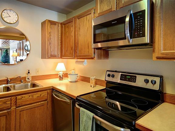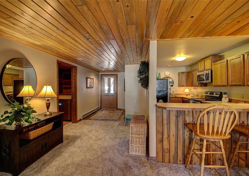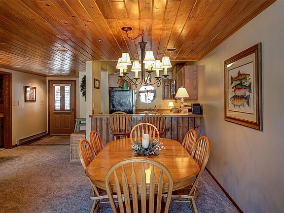 A Brilliant Move to Mountain Village in this 1600 sq ft Skycrest Condo end unit where the views just get even better. Easily accessed with underground parking garage and 'outside door' spaces for more convenience. Sold fully furnished, 2 bedroom, 2 baths with new hot tub and appliances 2018. Treated with lots of TLC, the drapes are custom, the Andesite rock wood burning fireplace is massive and the condo is in move-in condition. Big Sky Skyline free shutle service on Mountain Loop, Morning through Evening schedule. Overlooking the Lake, best views on the the Mountain!