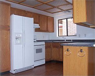Golf Course location completely remodeled home ready to move in !Visual Tour Link:http://www.visualtour.com/show.asp-t=1657732&prt=10003 Super Clean with ALL the appliances included:Washer/Dryer,Side By Side refrigerator D/W, gas range- super clean also. Beautiful new Wood Laminate Flooring, New Carpet and pad through out the rest of the house. All new Paint,flooring & Trim, new back patio door with blinds in the middle, newer HVAC unit that was installed 2 years ago as well as an evaporative cooler. The master suite has the separate sink/vanity area and shower/toilet and it is very spacious with 2 closets. Front and Back landscaped with alley access. Cerbat Cliffs Championship PUBLIC Golf Course so close many people could carry their clubs and walk there ! ! !