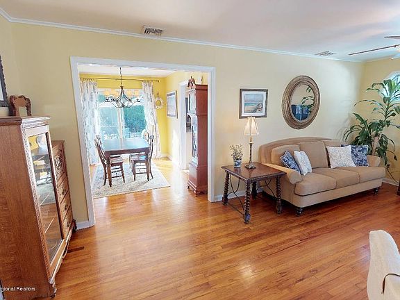 You will love this immaculate home! From the gorgeous hard wood floors to the crown molding and everything in between this house is turn key! The brand new bathroom boasts a vessel sink and subway tile. A bright and cheery dining room opens to the deck and beautiful in ground pool! The spacious finished basement is a great place to workout or relax! You will enjoy a dead end street close to shopping, dining, the Shark River and the beach! (The third bedroom is currently open and being used as a lovely office; it could easily be closed if bedroom space is a priority.)