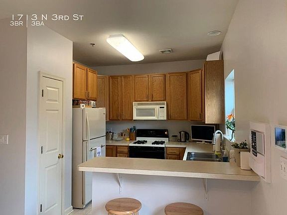 There are not only one, but two master bedrooms! Both have their own bathrooms and walk in closets. One has a soaking tub, walk in shower, and double sinks. The other has a combination shower and tub. They both have incredibly high vaulted ceilings with ceiling fans. (12 and 16 feet high!) Great location in Midtown, close to the river and Broad Street market. In a location where it is impossible to find a garage, this home comes with an oversized double garage! Garage has a second story with a 12' x 20' workspace/storage space, whatever you want to use it for! A standard sized staircase will take you to the second story with ease. There is also a work counter in the garage with a pegboard for your tools and also some bookcases that the owner will leave for your storage. When you walk into the main living and dining room you will be greeted with beautiful hardwood floors, crown molding, chair rails and 9 foot ceilings. The first and second floor have a great sound system and intercom that you can also use as a radio and 6 disc changer. Home also has a security system that tenant can continue if wanted. There is a full length covered front porch that is 6 feet wide and beautiful to just sit out with a cup of coffee and enjoy the scenery. Both front and back yards have beautiful established flowers and perennials, including rose bushes, lilacs and hydrangeas. It would be perfect for someone who loves to garden. In the back yard there is a 12'x10' cement slab perfect to put all your outdoor furniture on. The house has only ever had two owners and has been meticulously maintained. Appliances include: microwave, dishwasher, refrigerator and stove. Washer and dryer are also included and located on the 2nd floor. Gas hot water heater, heating and cooking. Central air cooling. No pets. Tenant pays for: gas, electric, water and sewer. Tenant will also maintain lawn and snow removal. Owner will provide a lawnmower and shovel for the tenant to utilize. Fenced in yard. No basement. Section 8 is non participant at this location. Room measurements: LR 20 x 13, DR 10 x 9.6, Kit 7.11 x 7.1, BR1 18.11 x 12.9, BR2 12.2 x 9, BR3 15.7 x 13.6, BR3 Closet 8.9 x 2. 18-22 Months *Upcoming July 3rd, 2020* 3 Bedroom 3 Bathroom Brick 3 Story Town Home With Many Features! More Photos To Follow Once The Fresh Painting Has Been Completed! 2 Car Garage Back Yard Carpet Central Air City Water Electric Dryer Fence Gas Heating Hardwood Flooring Public Sewer Stove Vinyl Washer
