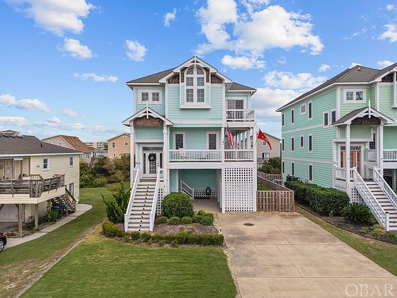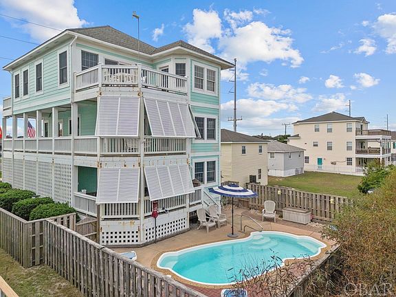 Don't miss out on this beautiful 4 bedroom, 4 full bath + One 1/2 bath furnished home in Kill Devil Hills between US 158 By-Pass and N Virginia Dare Trail beach road. Used as a primary home, this home is move-in ready and could make a spectacular rental, investment property or second home. Dip in the large pool gas heated pool, soak in the jetted hot tub or rinse off in the outdoor shower after a long day at the beach.  The Atlantic Ocean public beach accesses are less than 1/2 mile away with free parking!  The reverse floor plan and high end finishes paired with an excellent location in the heart of Kill Devil Hills near shopping, restaurants and grocery stores are just a few of 1713 N Croatan Highway's inherent features.  Enjoy East and West facing decks that capture the stunning sky colors of sunset and sunrise.  Ground level has private covered entrance, spacious flex space  used as second living room with access to covered hot tub porch and private pool. Custom built-in cabinets flank the gas fireplace, wet bar and under counter refrigerator. An adjacent office space has custom storage built into the wall and sliding door to the covered hot tub deck and pool access. Mid-level has two bedrooms that share bath and each has entrance to East and South facing covered decks.  The en-suite bedroom on Mid level offers private entrance to east facing deck, which has metal louvered shades for privacy.  Top level kitchen has custom cabinetry and pantry cabinets.  Built in double Fisher Paykel dishwasher and double beverage drawers are perfectly integrated into the cabinetry with custom wood panels.  Refrigerator is stainless with French doors and drawers.   GE Monogram range has gas cooktop burners and electric oven and is topped with Microhood. Custom crafted dining table aligns with living room creating an open airy space for entertaining.  Catch a glimmer of the Atlantic Ocean from the East facing top sundeck and from the West sun deck enjoy spectacular views of sunset.  Custom cabinetry continues into living room framing a second gas fireplace.  Yard sprinklers keep the manicured landscaping irrigated and low growing turf provides a soft carpet under foot.  Use as a vacation getaway, primary home or an addition to your financial portfolio.  Easy to show, 1713 N Croatan Highway is one to add to your Must See list and your 2023 Real Estate Portfolio! Contact your favorite NC Broker today! Video Walkthru:  https://youtu.be/BqkZWbApOTs?si=heoF5RJkJj4cy15d