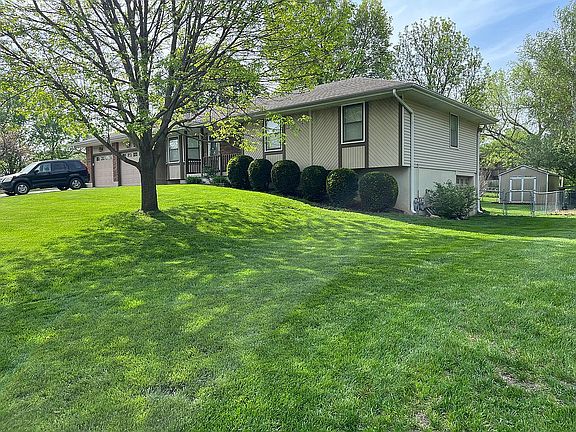 Ranch with a Large yard and mature trees, garden, out building, fence, patio. Inside you will find three bedrooms upstairs. Master has its own private bathroom, laundry on main floor. Spacious kitchen and breakfast area and also a living room and full bath upstairs. Downstairs you will find a storage area that is dry walled, wired and Hvac, with a walkout garage door, and also a rec room that is not finished but wired for electrical, and Hvac and a full finished bathroom. Granite countertop and upgraded appliances in the kitchen, upgraded hardware and lighting and vaulted master living room and dining area. Brick wood burning fireplace in living room upstairs, and downstairs.