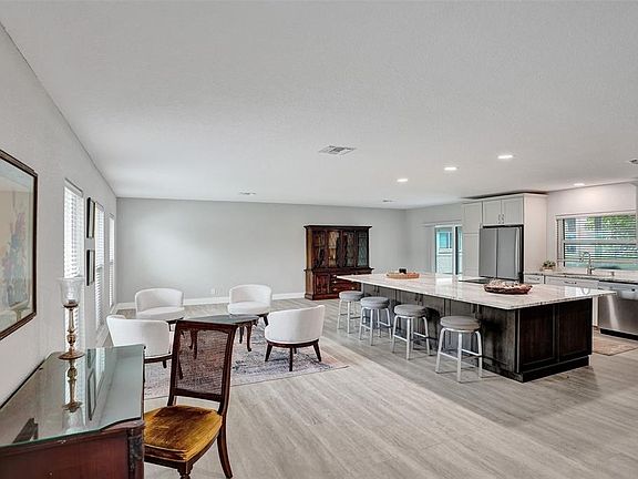 This is the home you've been waiting for! Completely remodeled top to bottom in 2023, no detail has been overlooked in this stunning 3-bed, 2-bath waterfront property! Enter into an inviting open floor plan featuring new kitchen w/ two-toned shaker cabinets, upgraded granite counters & stainless steel appliances, all complemented by an oversized bar area ideal for entertaining! Each bedroom is generously sized and the bathrooms have been beautifully updated. Enjoy new luxury vinyl flooring throughout, enhanced by upgraded baseboards. Step onto the enclosed and covered back patio, which offers peaceful waterfront views. New 2023 roof and A/C + insulation installed along w/ impact glass thru/out, this home is perfect for buyers looking to move right in! This gem won’t last long!