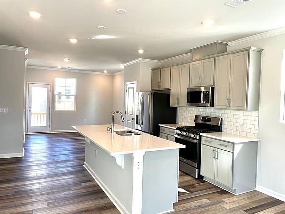 Brand New End unit tastefully designed townhome in the sought-after Depot 499 community of Apex. Move in ready . INTERNET is included in the rent! This 3 Level end unit TH boasts 3 bedrooms and 4 bathrooms, providing ample space for both relaxation and privacy. First floor features a bedroom with a full bath/ 1 car garage. ALL 5"LVP flooring through the entire second main floor. From the stylish 42"white cabinetry to the stunning countertops/SS Appliance, every element has been carefully chosen to create a space that is both functional and visually appealing. A cute balcony deck can be accessed from the dining area. Top level boasts one master bedroom and suitable size of second bedroom with en suite. Electric power charger is provided in the garage. It is conveniently located near Apex downtown restaurants/coffee shops/all kinds of supermarkets, minutes away from HW 540/ HW 64. Tree-lined promenades and walking trails throughout community. Spacious clubhouse with saltwater pool and fire pit.