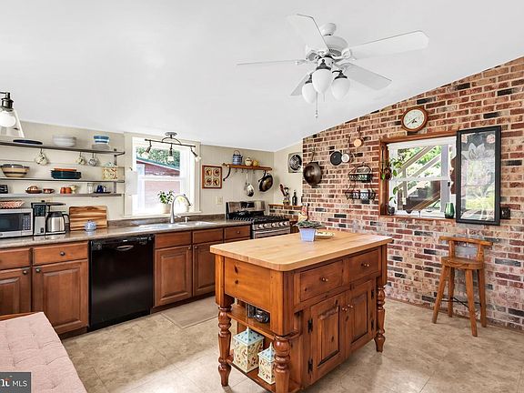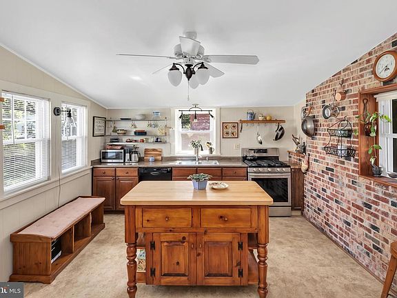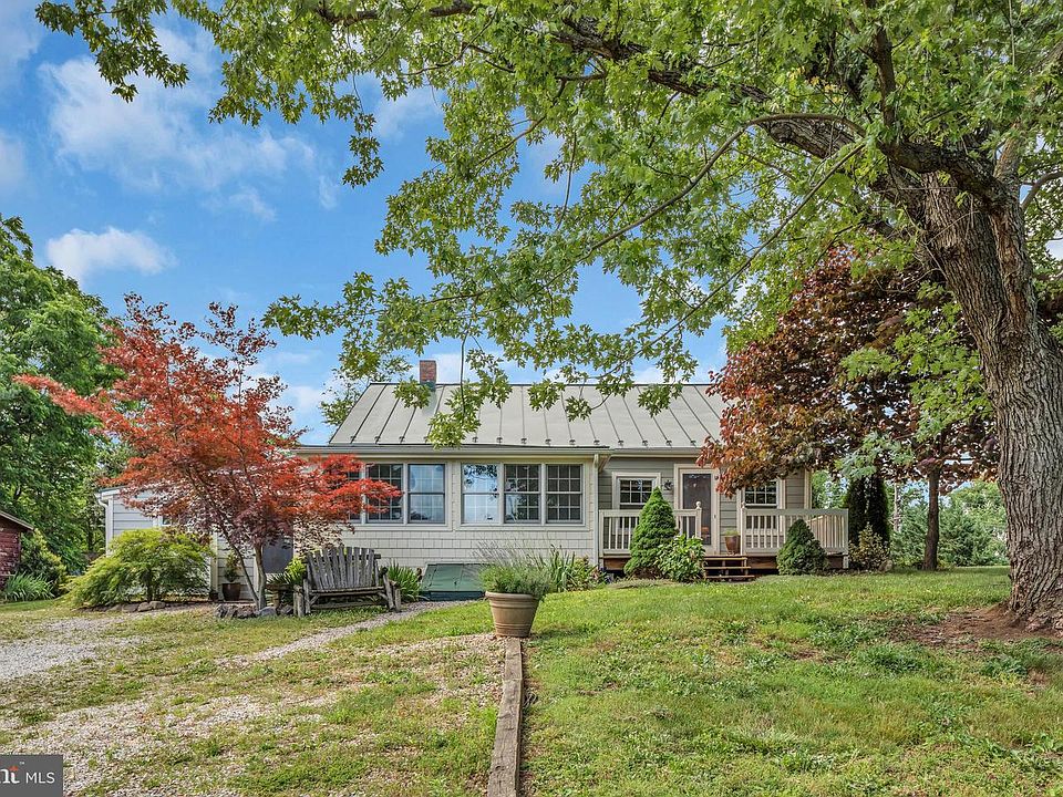 Just the perfect charm filled home. So much to love here. Large kitchen with beautiful brick wall. Dining room with hardwood floors and attached sun room. Living room with access to front deck. Two main level bedrooms with full bath. Spiral stair case leads to sun filled office with an upper balcony, master and full bath. Many closets for storage. Gorgeous 2 acre lot with garage, sweet shed that has electric and tons of possibilities, grape arbor, additional buildings & basket ball quart. Lovely standing seam roof, newer siding, new dual heating oil burning furnace with air circulation and heat pump back up. Central a/c. Great location off all hard surface roads. Such a perfect place to land!