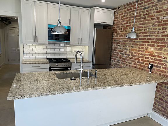Beautiful, 521sf, 1BR/1BA terrace apartment, that underwent a 100% renovation in early 2024 in a nice clean, quiet, friendly and attentively managed 5-unit 1882-era building in Bolton Hill. This small apartment is 1 year old from top-to-bottom, with a traditional-meets-industrial vibe of concrete floors, exposed brick, large windows, exposed heating pipes, ceiling fans, and central a/c, mixed with original wood windows and traditional architectural moldings and trim. The open-concept living space has a fully equipped kitchen with dishwasher, microwave, European-style counter-depth fridge, gas range, garbage disposal, granite counter-tops and a French door which leads directly to a shared garden and patio. The kitchen overlooks a sunny living room with 4 windows. The bedroom has two windows, a closet and a ceiling fan, and the bathroom has a bathtub, vanity and decent storage. A small coat closet at the entry completes the space. Free shared washer and dryer are on the same level as the apartment. This terrace apartment is in the basement of the house but is fully above ground with 8' ceilings and large windows, and has both an interior entrance from the house, and an exterior entrance from the back yard. The apartment overlooks a beautiful mature landscaped courtyard with table and chairs and even a house grill. FEATURES: Living room: 11'10" x 13'1" Kitchen: 8'7" x 8'3" Bedroom: 12'10" x 12'6" Bathroom: 6'7" x 8'10" Ceiling fans in LR and BR Secondary entrance directly into patio & garden Central air and additional heat w/Mitsubishi mini-split units Free use of shared laundry Shared courtyard and garden Secure bike storage on same level as apt. Credit check and references required. First month's rent and security deposit due at 1 yr. lease signing. $1,475/month includes free use of shared laundry facilities, a basement storage shelf (including an indoor parking spot for your bike), use of shared back yard/garden and a friendly (and accessible) owner/manager who lives 12 blocks away and really gives a darn. This is a recycling household, with large cans in the basement for tenant use. Tenant pays 15% of household "Public Service" BGE bill for heat, hot water, laundry and public space lighting (averaged $74.57/month over last 12 months). The apartment is separately metered for your own personal electric and gas (for cooking). Cats okay! Although we love them, we don't allow dogs. This is a non-smoking household. Available March 1st, 2025. This apartment isn't on the fringes of the neighborhood, but on one of its nicest, safest and sunniest blocks, with street parking located in front of and behind the house. Check out the house F*cebook page "1713 Park Avenue" for photos of the house and garden. You're gonna love this place!! Owners pays for water, sewer, trash pickup. Tenant pays 15% of household "Public Service" BGE bill for gas for heat + hot water + dryer, and electric for washer/dryer and public space lighting (averaged $70.77/month over last 12 months). The apartment is separately metered for your own personal electric and gas (gas is for cooking). Cats okay! Although we love them, we don't allow dogs. This is a non-smoking and a recycling household.