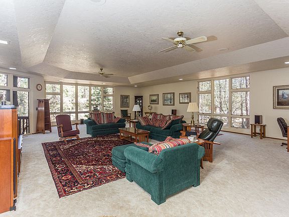 Stunning custom residence situated on an 3 lots in highly desirable Hidden Valley Ranch offers fresh updates on a gorgeous, towering pine treed lot just minutes to downtown! This expansive home offers very generous room sizes throughout the interior & a park like setting on the exterior! Main level of home includes large luxurious kitchen, formal dining room with rich wood beamed ceiling, built in buffet & gas fireplace with marble hearth, powder bath, large laundry room with tons of storage, utility sink & W/D. Living room with custom tray ceiling, perfect for large party entertaining, plus adjacent office/retreat with built in bookcases. Kitchen boasts abundant storage, Kitchen-Aid appliances, Vent-A-Hood custom range hood, double wall ovens, breakfast bar, planning desk, breakfast nook & impressive walk-in pantry. Upper level of home contains primary master suite as well as additional junior master suite w/ensuite bath & 3rd guest bedroom. Master suite is massive, overlooks the heavily treed, boulder adorned rear yard, has a huge walk-in closet, raised height dual vanity, jetted tub, walk-in shower, added wall heater for added comfort. Junior master suite has large walk-in closet, raised height vanity, comfort height toilet & full bath. Lower level of home has family/flex/media space with floor to ceiling flagstone fireplace, wet bar, built in storage closet behind bar, plus 4th bedroom & bathroom. Also on lowest level is a +/- 903 sq. ft mechanical room that makes for excellent hobby space, workshop, home office with endless possibilities; this space is NOT included in sq. footage on listing but IS included on county records. Other improvements & items of note would be recently replaced (2) 80 gal. hot water heaters, new A/C unit to main level within last 2 years, (3) updated furnaces, solid core doors throughout the home, Toto comfort height toilets, programmable wifi enabled thermostats, Pella wood casement windows throughout. Exterior is a paradise and truly park-like setting, complete with meandering concreate walkways around the home, towering Ponderosas and boulder outcroppings that can be enjoyed from upper expansive deck and lower patios. Did I mention the oversized 5 car heated garage offers epoxy flooring & abundant space for hobby enthusiast or car collector!