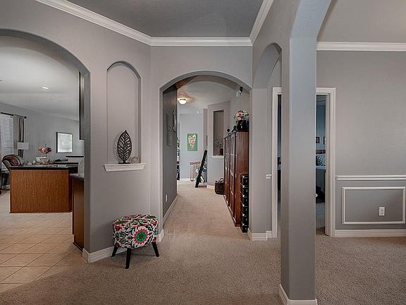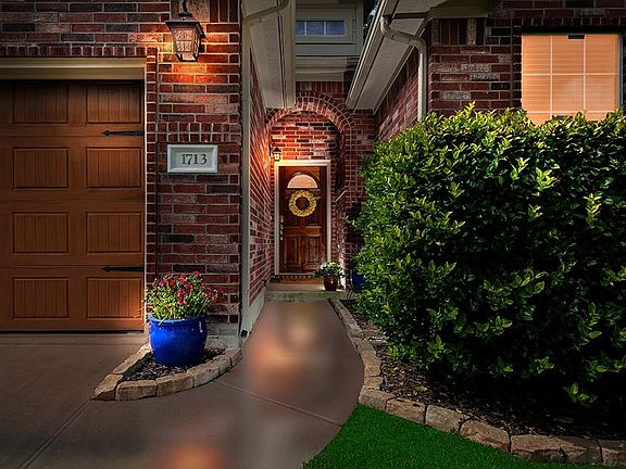Charming one story home in the Park at White Oak! Extensive tile flooring, graceful columns, crown moulding, art niches, detailed trim work and a soft, neutral paint palette throughout. Open concept island kitchen with breakfast bar, SS appliances and granite counters overlooks sunny breakfast room and den; elegant and spacious formal dining; three bedrooms; two full baths; washer/dryer/fridge included; two car attached garage; large fenced yard with patio has room to play and entertain guests!