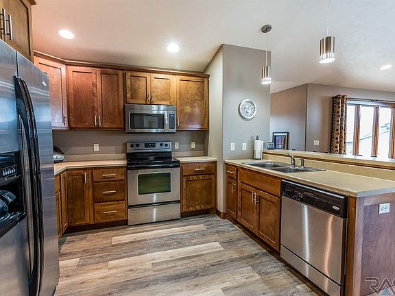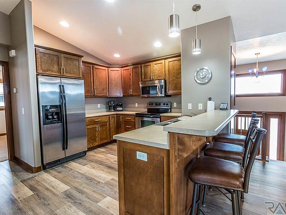 Custom built spilt foyer in west side Sioux Falls with custom touches though out. Finished 3 stall garage with epoxy floor coating. Main floor has luxury laminate flooring with cork base though out main floor. Custom built mission style kitchen cabinets provide plenty of storage. The living, dinning and kitchen have high vaulted ceilings. In the master you will find a huge custom walk in closet and pass though door to main bath. The second main bedroom is spacious with large closet. Dining room slider patio takes you out to the composite deck with stairs to large back yard. Custom wood blinds and window treatments stays with the house. Downstairs is framed and ready for you to put your custom touch on it. You will see the blown in blanket system (BIBS) insulation downstairs as it is through out the rest of the home including attic. Andersen windows throughout.