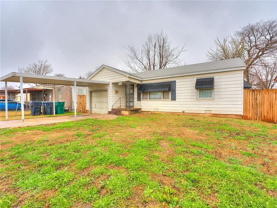 Your home search is over with this gem in the heart of Oklahoma City close to scissortail park and shopping. This cozy 2-bedroom, 1 bathroom, 1 car garage with carport home has new plumbing and electrical! Walk inside to see beautiful, refinished hardwood floors throughout the home - NO carpet - makes for easy to clean up messes! The open concept living room into dining is ideal for families or individuals. Dining room features a built-in nook with shelves and unique chandelier. Kitchen has been updated with ample counterspace and cabinets for tons of storage. The 2 bedrooms are perfect in size with closets and ceiling fans. Main bathroom has glass covered doors over the bathtub/shower and updated vanity sink. Outside is large with a chain-link fence and a small storage shed. Home does not have central heat and air. This one is ready for an investor or a perfect first-time family home! Sale is AS-IS. Schedule a showing today! Multiple offers received, deadline Sunday, March 12 at 5