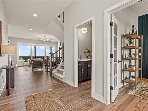 Award-winning builder, INSPIRED HOMES, showcases their popular Inglenook 2-story floorplan on a WALKOUT LOT as a new model home NOT FOR SALE. This home's main floor enters to a beautiful foyer, an office with glass French doors, a spacious open floor plan with custom cabinets and oversized windows, chef's kitchen with a gas cooktop and built-in appliances, and a dedicated dining area. The large owner's entry/mud room with boot bench is located directly behind the kitchen and conveniently walks straight to the large pantry. 2nd floor laundry is perfectly situated between all 4 bedrooms and right across the hall from a very large linen closet. Finished basement on walkout lot is perfect for entertaining. Full, gorgeous wet bar opens to a large rec room/family room. Basement also features an additional bedroom and full bathroom. Buy with confidence knowing that Inspired Homes warranty program will cover you for 1-yr on the workmanship of the home, 2-yr systems warranty and a 10-yr structural warranty. In addition to being conveniently located to grocery, shopping, dining, lake/golf recreation and entertainment within just a few miles....Pryor Ridge also offers a premier amenity package that includes open green space, walking trails, a playground, basketball and pickleball courts, and off-leash dog park and a 6-laned jr-competition sized swimming pool with shade cabanas.