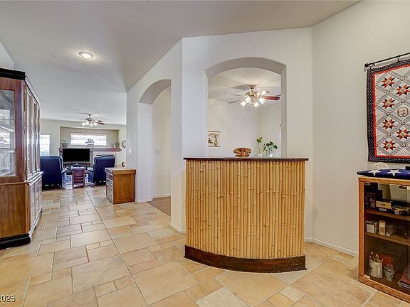 Charming & pristine describes this super clean ranch located in the quaint community of Classic Estates in North Las vegas. You can see the pride of ownership as soon as you walk in the door. Features include tile/laminate floors in living areas. Open concept kitchen w' loads of storage, granite countertops, real oak cabinets, separate island, gas stove w' microwave. Cozy up w' a good book next to your built-in fireplace in the family room. All appliances stay including washer/dryer. Spacious primary w' dual sinks in en-suite, separate tub/shower & large walk-in closet. Large dining room that could easily be a work-from-home office. Ceiling fans w' lights in every bedroom & family room. New metal screen front door. Energy saving solar tube w'remote installed in garage. Peaceful, private backyard w' extended covered patio w' ceiling fan/light, pavers, mature trees & shrubs. The side gate was extended w' pavers as well. Super low HOA. AC/furnace replaced in 2013. Welcome home!