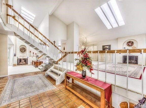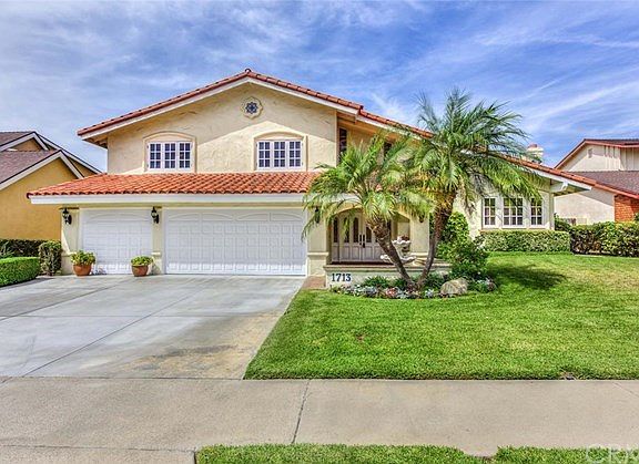 Tucked away on a picturesque cul-de-sac, gorgeous double entry beveled glass doors beneath custom stained glass windows welcome you in to admire every detail of this stunningly upgraded home. No detail has been overlooked in this spectacular Mediterranean tri-level featuring an open floorplan with cathedral ceilings, skylights, French doors and windows and dream kitchen with upgraded cabinets, polished Corian countertops, stainless steel appliances, custom backsplash, tile flooring with Talavera tile accents, flattop stove, convection oven, filtration system. Expanding your entertaining space to the outdoors, elegant double French doors lead to the covered Saltillo tiled patio with Koi pond, spa, abundant fruit trees, gardens and programmable sprinklers in rear, side and front yards. A spacious grand room showcases a flying staircase, built-in China hutch, bookcase, fireplace, upgraded lighting and window coverings. Two main floor bedrooms and a laundry offer convenience. All three baths have been fully upgraded, all bedrooms have cedar lined closets and custom window dressings. Real Spanish terracotta tile adorns the roof, and decorative stucco with inlaid tile enhances the exterior. The only thing this perfect home needs is a new owner you!