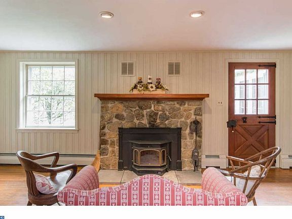 Welcome to 1713 Sawmill Road! Tranquility and serenity await you on this private, 5.08 acre lot in West Vincent Township. This spacious 4 bedroom, 2.5 bathroom, expanded Cape Cod offers room for the whole family! The bright living room welcomes you and features a stone fireplace with insert, a convenient wet bar, and beautiful hardwood floors that lead you to the formal dining room and spread throughout the home. Enjoy the open concept and open beam ceiling of the kitchen and family room. The kitchen boasts an abundance of cabinet space, butcher block countertops, peninsula with seating, skylight, and a sunny dining area, while the open family room offers a custom fireplace with brick hearth. Enjoy 2 spacious bedrooms on the main floor, along with a spacious study giving you the option of another bedroom or office on the main floor! Ascend to the second story and find the cozy loft complete with skylights, and the master retreat featuring lots of closet space and a full bath with dual vanity and soaking tub. Enjoy your morning coffee on the slate patio overlooking the peaceful pond, or entertain your guests on the covered, rear patio! Take advantage of the separate office outside, and the 2-car, detached garage providing additional storage space! Bring your horses-there is also a 3 stall barn and fenced-in pasture for your four legged-friends! What more could you ask for? Tucked away on a quiet road, yet conveniently located to the charming village of Birchrunville, and surrounded by miles of hiking and equestrian trails! Schedule a showing and see all of the fantastic features of this one of a kind property!