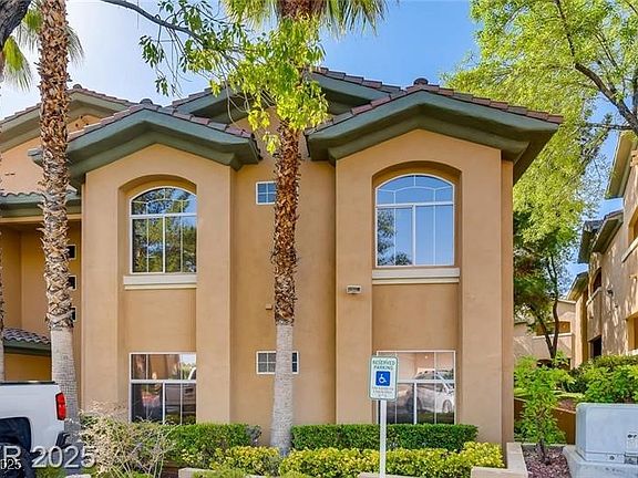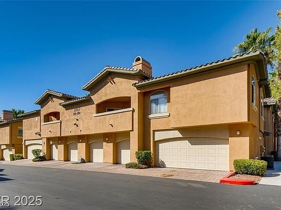 Spacious and stylish 3 bedroom condo with an attached 1 car garage located in a highly desirable guard-gated community in Summerlin North! This home offers a bright and open floor plan featuring tile and luxury vinyl flooring throughout, along with ceiling fans in every room, including all bedrooms. The inviting living room with a cozy fireplace creates the perfect setting for relaxing or entertaining and it opens to a private balcony that can also be accessed from the primary bedroom! The kitchen features granite countertops, plenty of cabinet space and all appliances included. A large laundry room adds extra functionality with built-in cabinets and a utility sink. The primary suite is a true retreat with a walk-in closet, and an en suite bathroom offering dual sinks, a separate shower and a soaking tub! Located within a beautifully maintained community, residents enjoy access to resort-style amenities including a clubhouse with a fitness center, sparkling pool and relaxing spa!