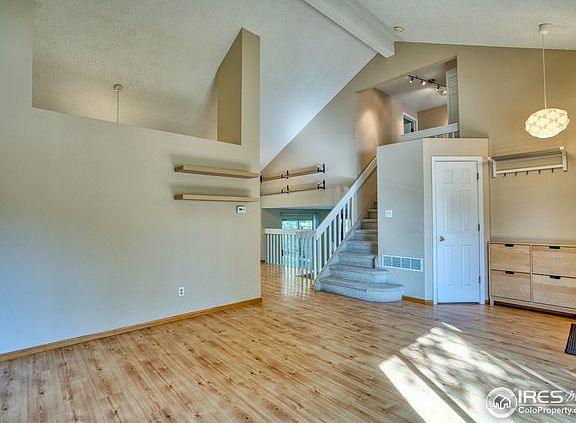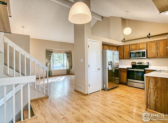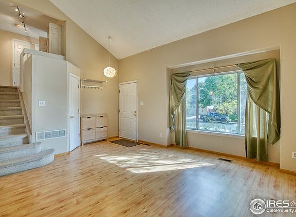 Quadlevel home has vaulted ceilings,gas fireplace,master with luxury features,all appliances are included,finished basement with work room.Super convenient upstairs laundry saves you steps!Backs open space with amazing Longs Peak view.Ready for you to call home!
