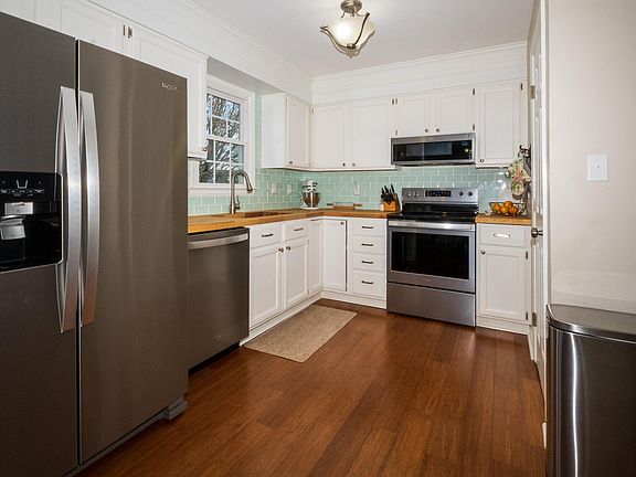 Adorably updated cape cod style 3 bedroom 2 full bath home located in Lexington's Southeast neighborhood of Hunting Hills! Guests are greeted by a view of the family room and all eyes will be drawn to the wood burning fireplace and flanking built-ins. The kitchen includes a pantry, updated stainless appliances and butcher block counters accentuated by a modern pop of color in the backsplash. Just off the kitchen is a spacious dining room overlooking the fenced backyard and deck. The home features a first-floor primary with an awesome walk-in closet, separate vanity area and updated full bath. Upstairs you will find two generously sized bedrooms separated by a full bath. Ample walk-in attic storage is accessed off one of the upstairs bedrooms. Additional updates include solid bamboo flooring throughout most of the first floor, a newer heat pump, water heater and dimensional shingles. Outside you can enjoy spring and summer months grilling on your large back deck while enjoying your fully fenced backyard. Located close to MOW, Tates Creek Rd. and Richmond Rd., schools, parks, shopping and more!