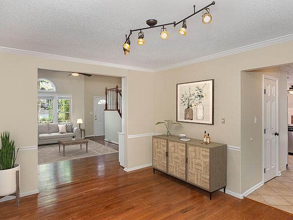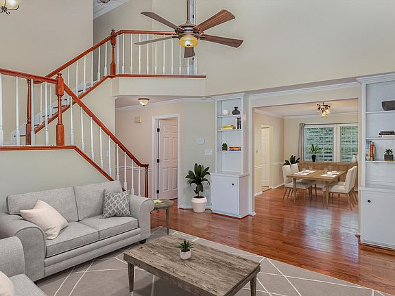 MOVE-IN READY HOME WITH A PARK ATTACHED! Enjoy less stress when you can move into a professionally cleaned, freshly painted interior with NEW carpet, Fenced yard and all appliances in place! Be blown away as you enter the home and experience the 2-story living room with custom built-ins at the Dining (OR) Home office entrance. The open (to Family room) kitchen is upgraded with granite counters, gas stove and Stainless Fridge. The upstairs bedrooms and closets are very generous in size! Great space in the 2-car garage including a kayak hanger, hidden storage and door to the beautiful, landscaped walkway. Don't miss the 14'x10' Wired workshop that offers a private space for your favorite hobby, teenager or additional storage. The backyard on this cul-de-sac lot offers privacy like no other, but open space could be redefined with some landscaping creativity.... after all, your back gate introduces you to acres of wooded greenspace and the MILLBROOK EXCHANGE PARK with it's tennis courts, pools, walking trails, dog park and community center. Home is priced BELOW tax value too. Exterior was painted 3 years ago. HVAC and water heater were replaced in 2022. You won't regret your walking proximity to all things convenient like Schools, North Ridge shopping centers & restaurants. Only 10-15 minutes to downtown Raleigh or Crabtree & 20-30 minutes to RTP or RDU Airport. COME SEE YOUR NEW HOME TODAY!