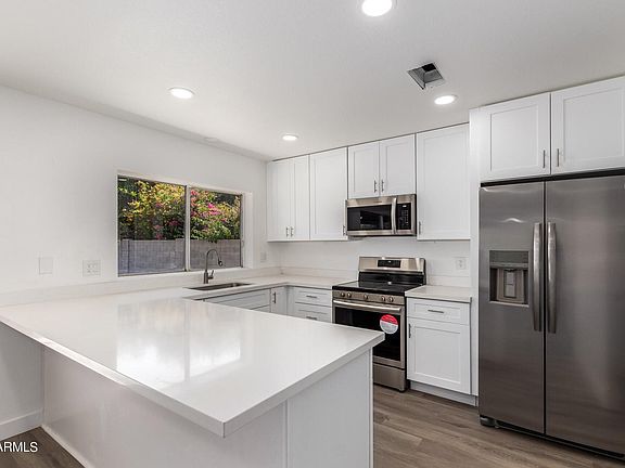 This 3-bed, 2-bath Chandler home has been thoughtfully updated throughout, with a clean, modern look and feel from front to back. Step inside to brand-new flooring, updated bathrooms, and a remodeled kitchen featuring quartz counters, white shaker cabinets, new stainless steel appliances, a walk-in pantry, and a peninsula with bar seating for casual meals or conversation.