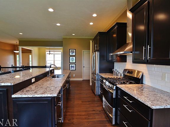 Gorgeous Ranch on Quiet Cul-de-sac in East Bloomington w/ Finished Basement! This 4 bedroom, 3 bath offers an open floor plan & SO MANY UPDATES! Hardwood floors & built-ins! Newly remodeled kitchen boasts 42" espresso cabinets, granite counters, stainless appliances, an extra large 2-tier bar & custom built eat-in booth! Dining w/ egg-crate ceiling! Large master w/ en suite bath, double vanity, soaker tub, tiled shower & walk-in closet! Basement w/ wet bar & theater! 2 tier deck! Heated 2 car garage w/ pull down attic stairs! A RARE FIND!