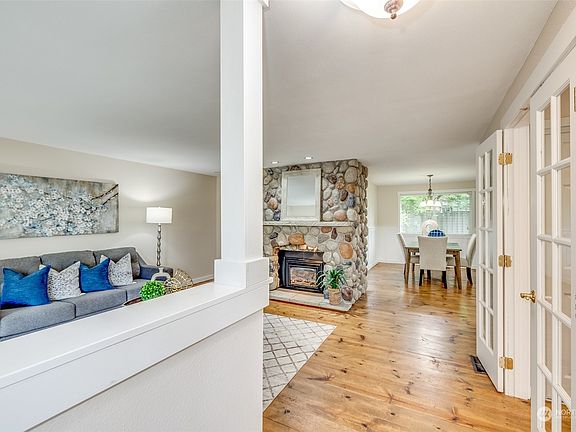 Beautiful Rambler in Mays Pond area of Bothell. The spacious floorplan features 3 bedrooms, 1.75 baths on a 7,405 s.f. lot! Brand new kitchen with new cabinets & quartz counters & stainless steel appliances. Remodeled bathrooms, gorgeous wood floors, stunning gas fireplace wrapped in river rock, & covered back patio with fenced yard! Spacious primary suite with beautiful wainscoting, large closet, remodeled full bath including updated vanity with quartz counter, shower over tub, and tile flooring. Two additional light-filled bedrooms. Private yard with large covered patio - great for BBQing! Ample space to garden, relax, entertain or play! Attached two car garage with additional room for storage & full size washer & dryer included!
